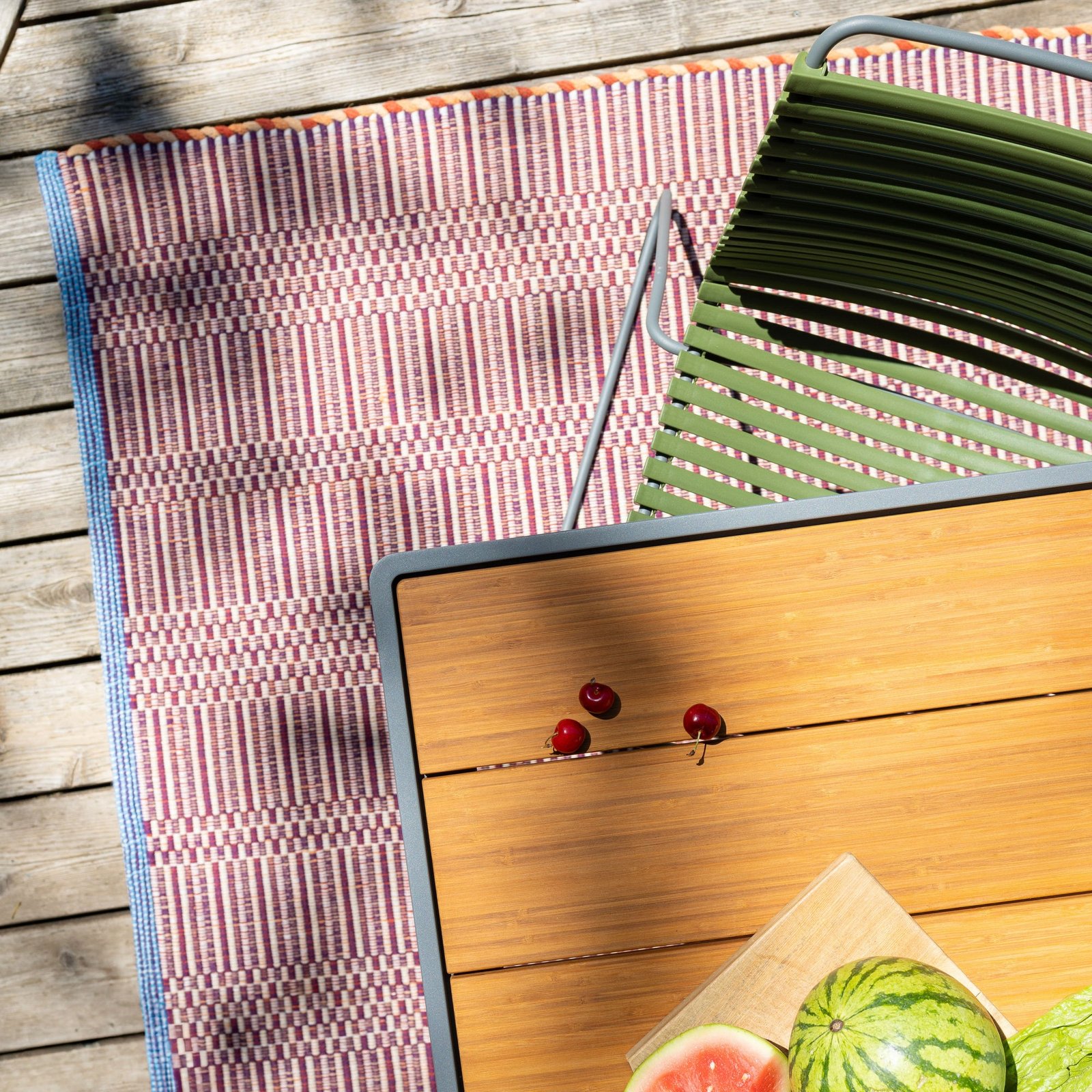 Add a pop of pattern indoors or out with the Arvo Handwoven Rug. Made of 100% recycled PET, its eye-popping design brings together a medley of colors sure to brighten any living room, mudroom, or patio.