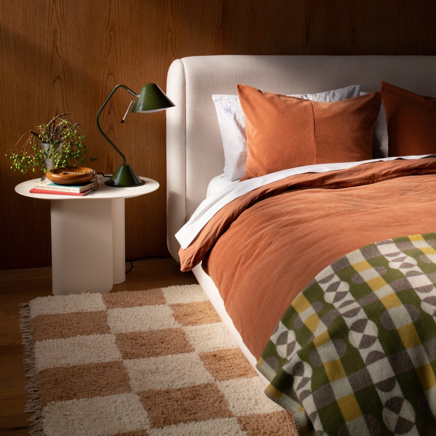 Hapindecor and Pendleton® Woolen Mills share a passion for crafting modern heirlooms, and this blanket from the Oregon maker is proof. The striking pattern is inspired by hand-painted game boards from the turn of the century. Brushed woven wool jacquard gives it a soft and lived-in feel, while a blanket stitch edge adds the final touch.